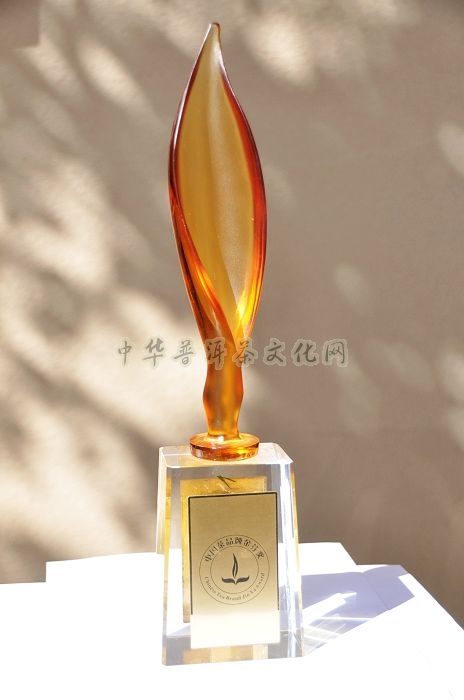 葳盛茶業(yè)榮獲的“中國茶品牌金芽獎”獎杯