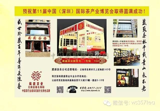 昆明葳盛茶業(yè)有限責任公司再次亮相深圳茶博會,展位位于1號館T009號(位置與去年相同),面積為54平米,在整體的展位設計上進行了很大的改觀,無論是色彩還是主題元素很好的結(jié)合了葳盛文化,充分的把葳盛品牌形象打造出來,同時把茶文化弘揚出去。在茶品展示方面,精選了極具代表性的茶品,將為您展示葳盛收藏多年的陳年普洱,葳盛自主研發(fā)的“哈尼系列”、“德昂系列”、“樣樣好系列”、“山頭茶韻”以及“滇茸系列”等精品普洱茶。