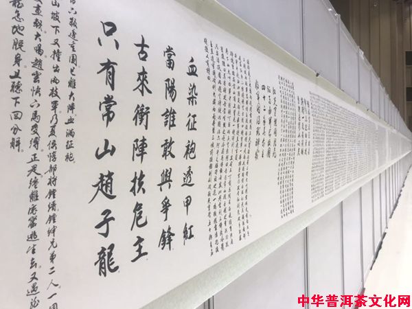2017年10月28—29日,近現(xiàn)代中國(guó)書(shū)法名家單永欽先生千米書(shū)法長(zhǎng)卷《三國(guó)演義》一百二十回,八十多萬(wàn)字巨幅長(zhǎng)卷在北京雁棲湖國(guó)際會(huì)展中心召開(kāi)新聞?wù)褂[會(huì)和單永欽書(shū)法《三國(guó)演義》研討會(huì)。葳盛茶業(yè)作為本次活動(dòng)紀(jì)念特制典藏普洱茶研發(fā)企業(yè)并受邀亮相活動(dòng)現(xiàn)場(chǎng)。