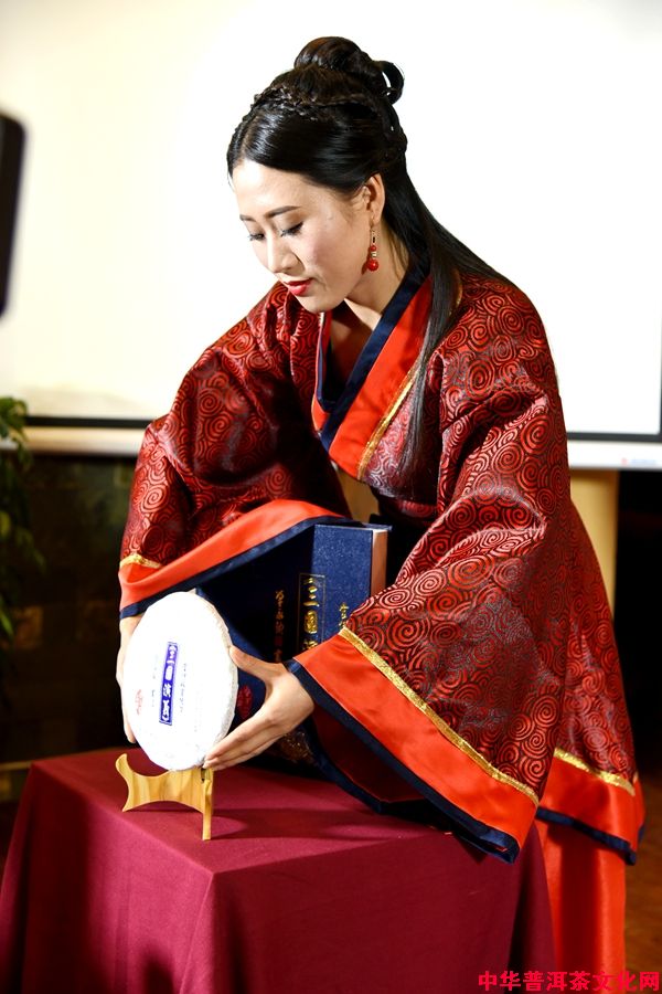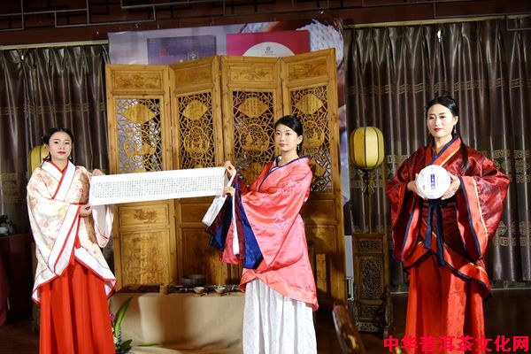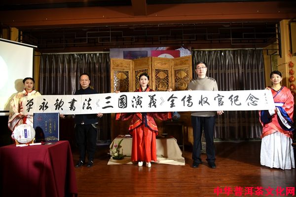 茶藝師展示單永欽先生《三國演義》古風(fēng)篇,此古風(fēng)篇為單永欽老師親筆書寫。