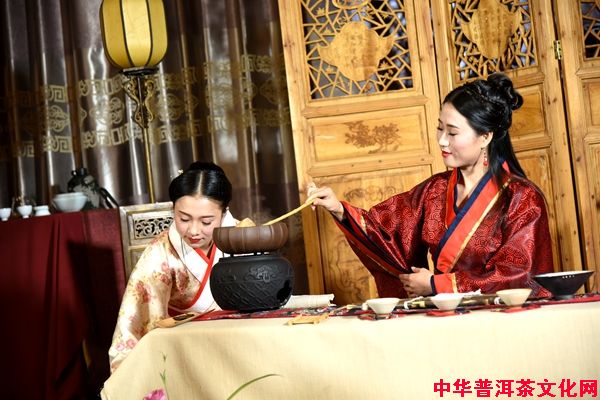 葳盛優(yōu)秀茶道藝術(shù)師呂曉燕、周德姣化身大喬、小喬穿越三國,圍爐煮茶,再現(xiàn)經(jīng)典。