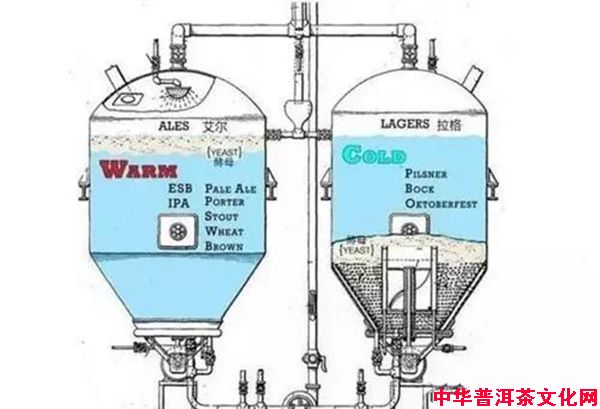 精釀啤酒和工業(yè)啤酒的發(fā)酵工藝也有所區(qū)別,通常精釀啤酒采用的是艾爾工藝(Ales,上發(fā)酵工藝),工業(yè)啤酒采用的是拉格工藝(Larges,下發(fā)酵工藝),二者最主要區(qū)別是發(fā)酵過程中酵母所在的位置和發(fā)酵溫度不同。如圖所示: