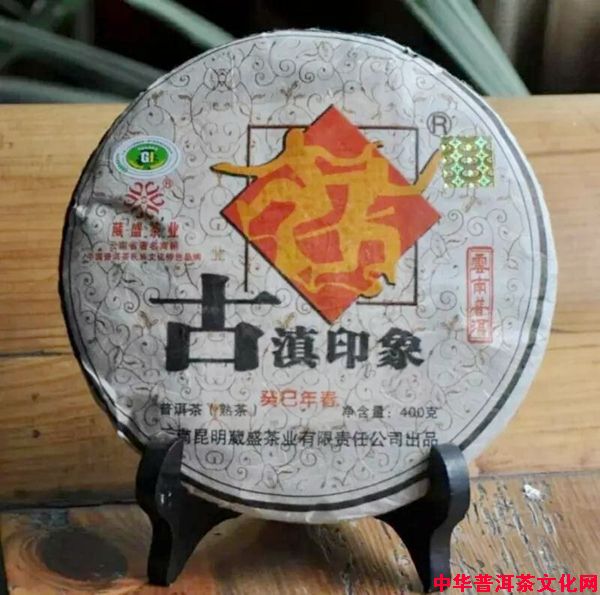 2013葳盛【古滇印象】熟普,它有歷史的韻及傳統(tǒng)普洱熟茶的純,它綜合了布朗的厚,僾尼的甜,從用料到拼配的比例協(xié)調(diào)統(tǒng)一,層次感強。經(jīng)過5年在昆明的純干倉存放,湯色紅濃透亮,唇齒留香,湯感糯滑,舒暢自在。
