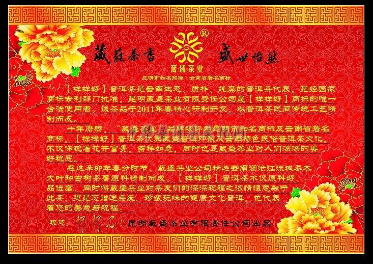 十年磨礪,“葳盛茶業(yè)”品牌被評(píng)為昆明市知名商標(biāo)及云南省著名商標(biāo),樣樣好普洱茶代表葳盛普洱印象及云南特色民族普洱茶文化,不僅體現(xiàn)著花開富貴,吉祥如意,同時(shí)也是表達(dá)葳盛茶業(yè)對(duì)人們深深的美好祝愿。