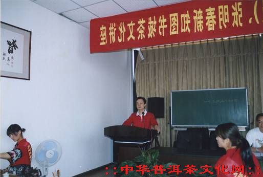 葳盛茶業(yè)總經(jīng)理張明春在新知圖城茶文化講座上發(fā)表演講